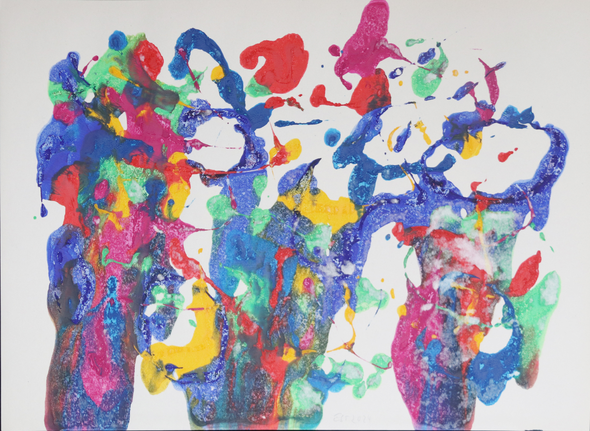 Karneval III, 2024 42 x 60 cm Monotopie, Acryl auf Zeichnungskarton
