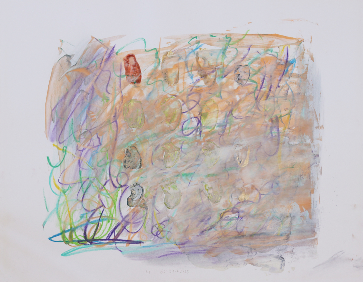 Klangschichtungen 1, 2023/2025 42 x 60 cm Aquarell und Wachsstift auf Zeichnungskarton