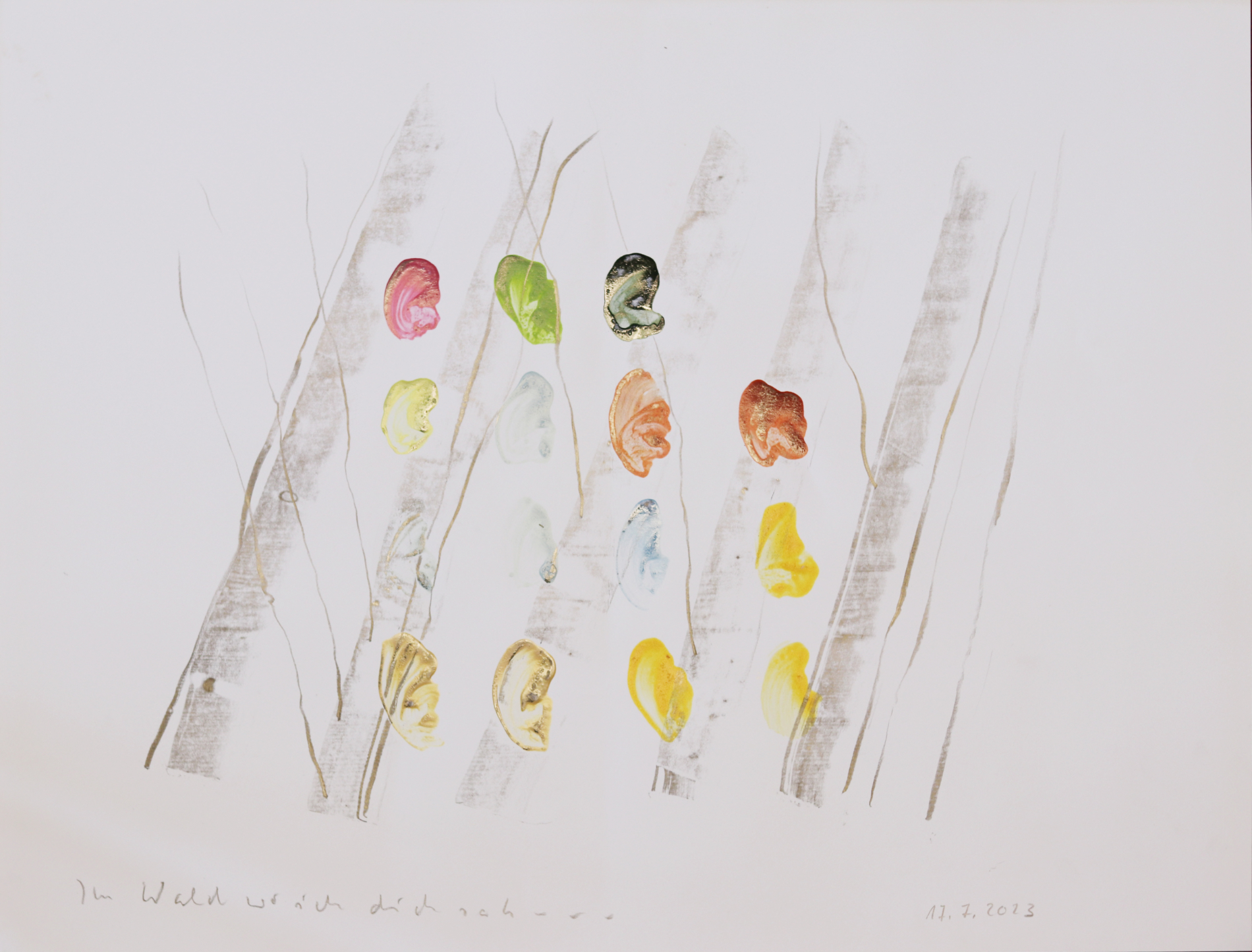 Im Wald, wo ich dich sah ..., 202350 x 65 cm, Acrylfarbe, Grafit auf Zeichnungskarton