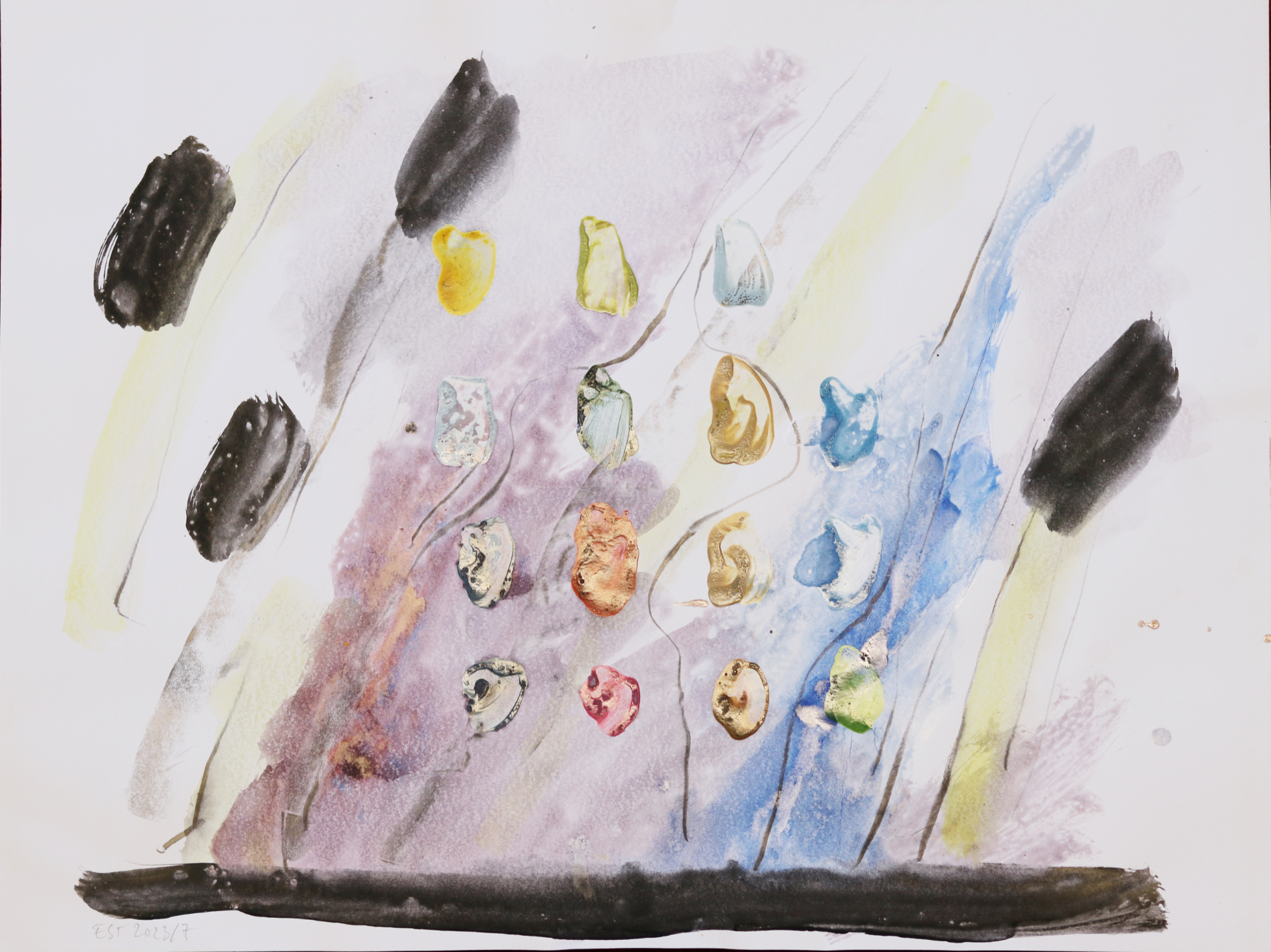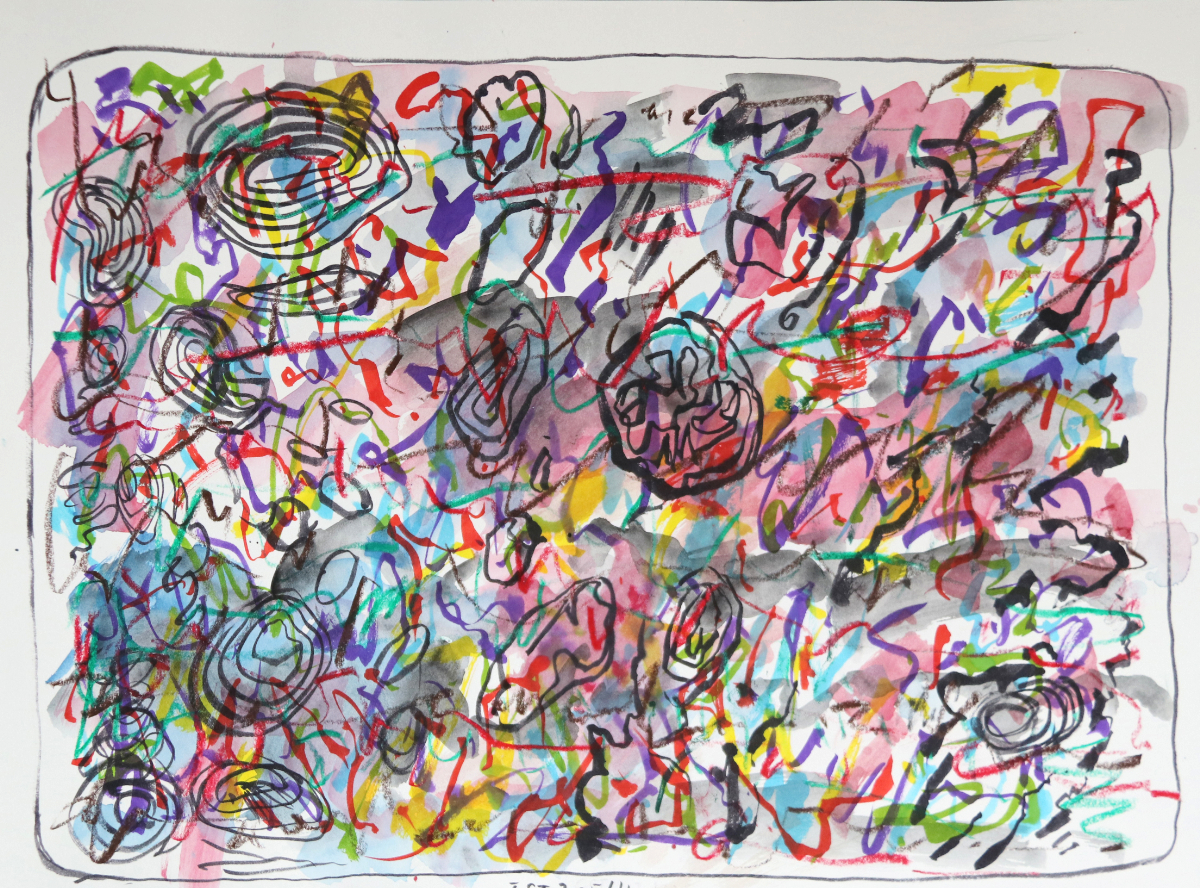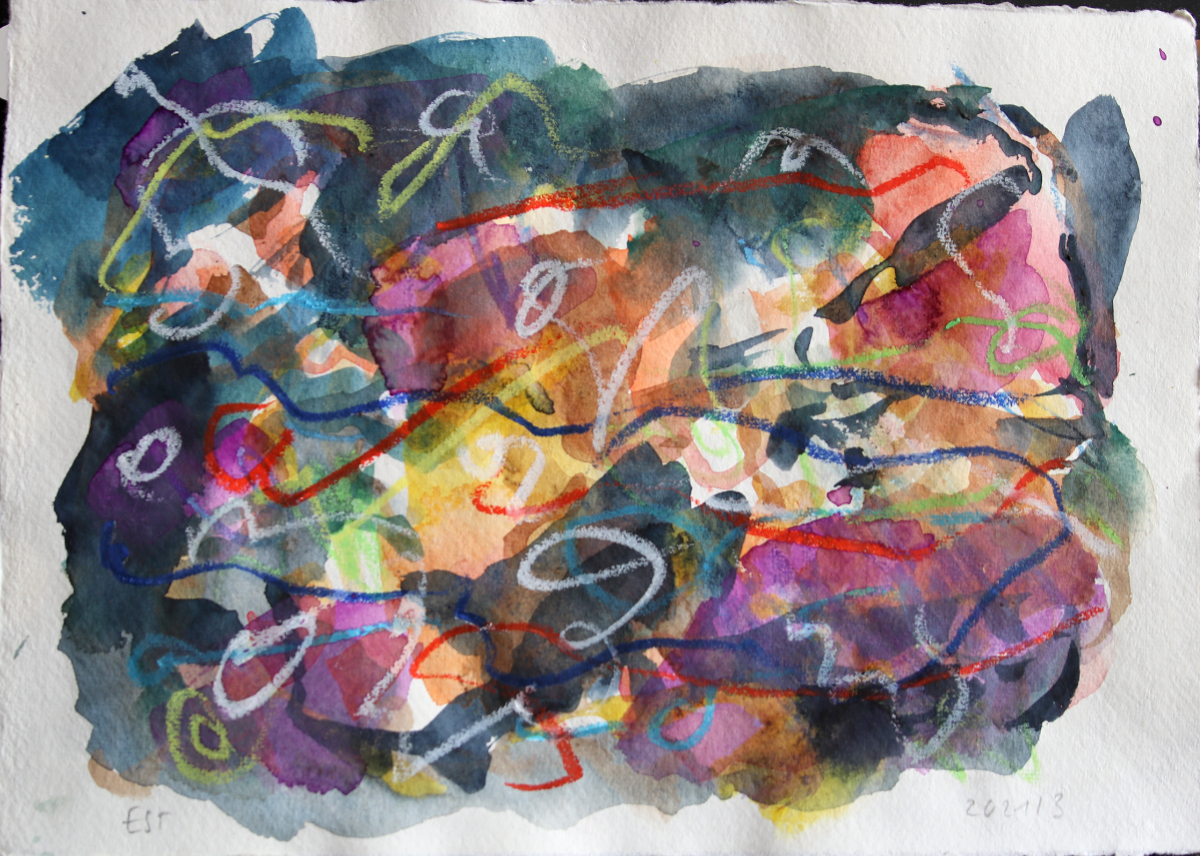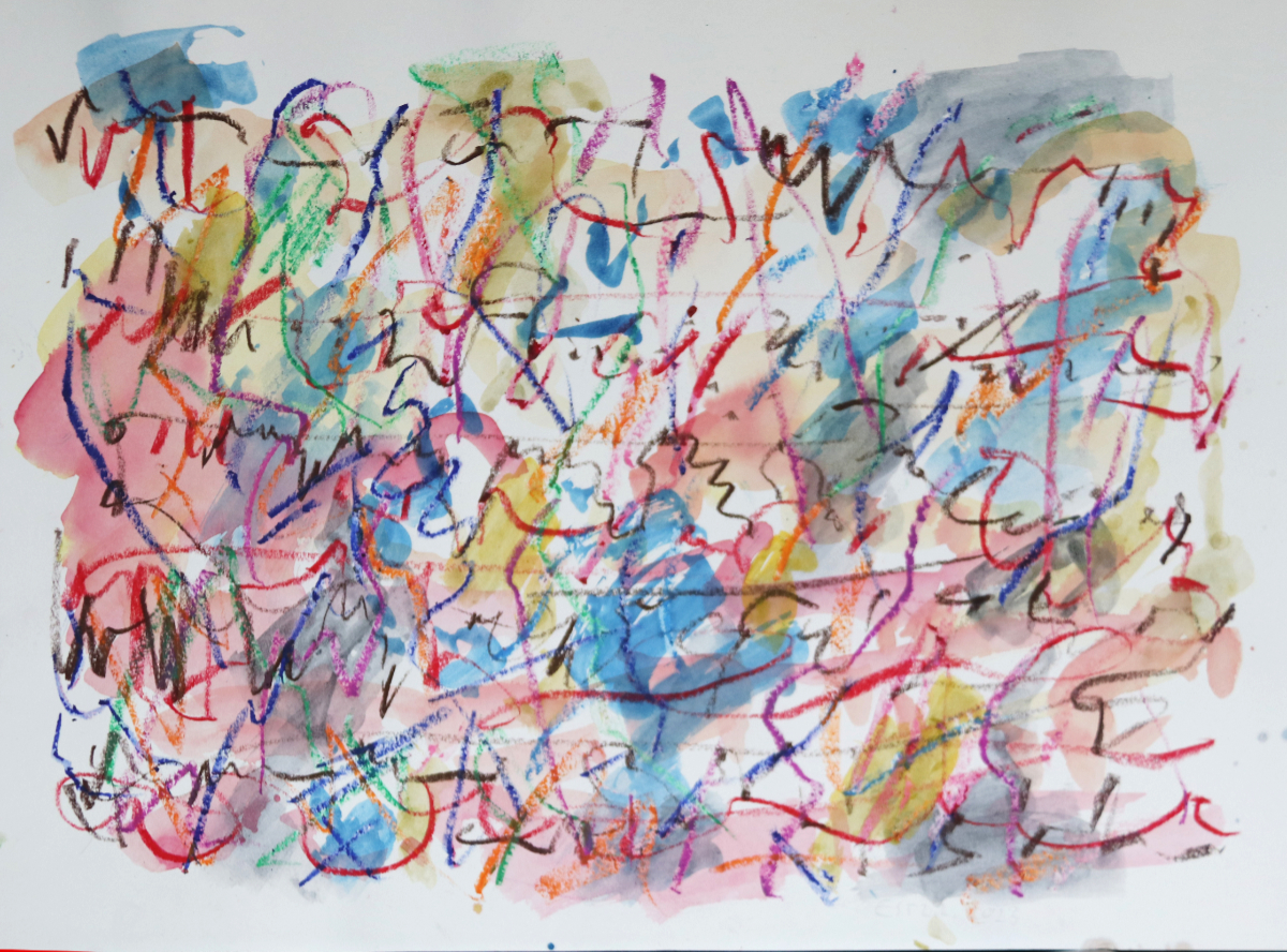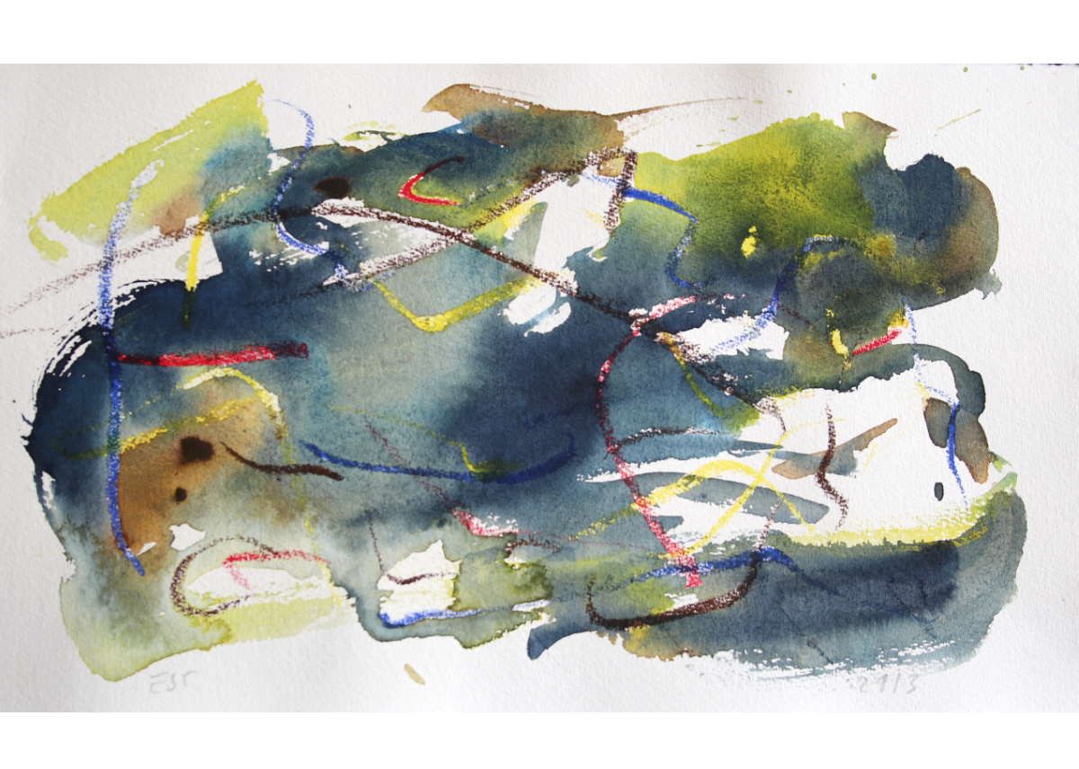 Klangschichtungen 1, 2023/2025 42 x 60 cm Aquarell und Wachsstift auf Zeichnungskarton
