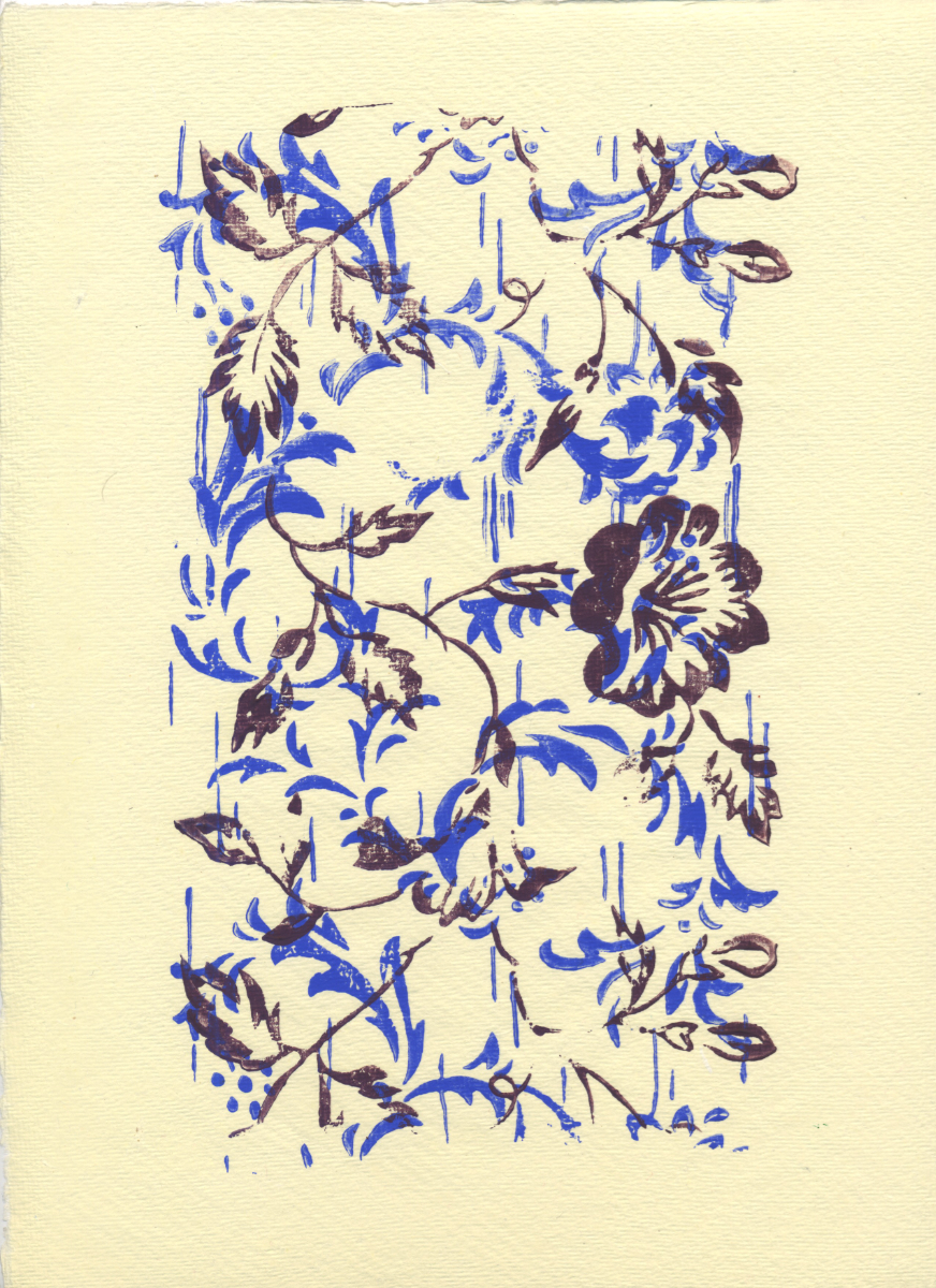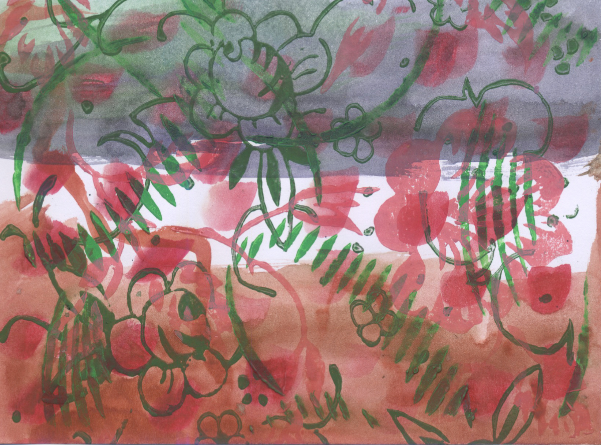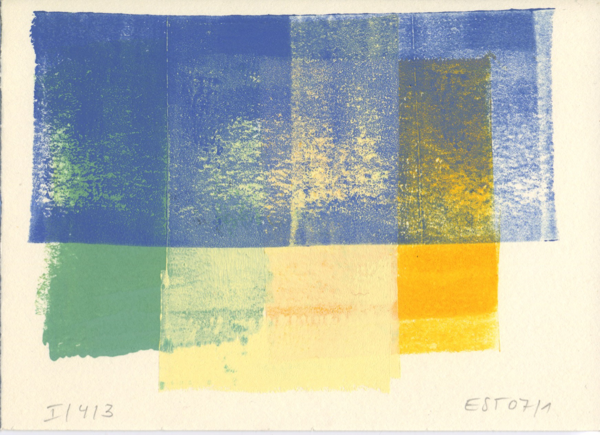 Gärten 7, 2026, 10,5 x 14,8 cm, Walzendruck, Aquarellfarben