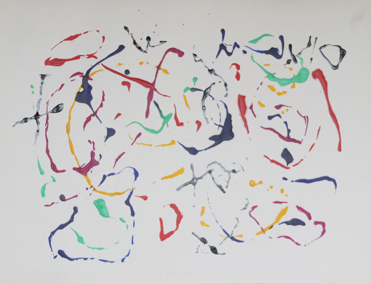 Karneval III, 2024 42 x 60 cm Monotopie, Acryl auf Zeichnungskarton