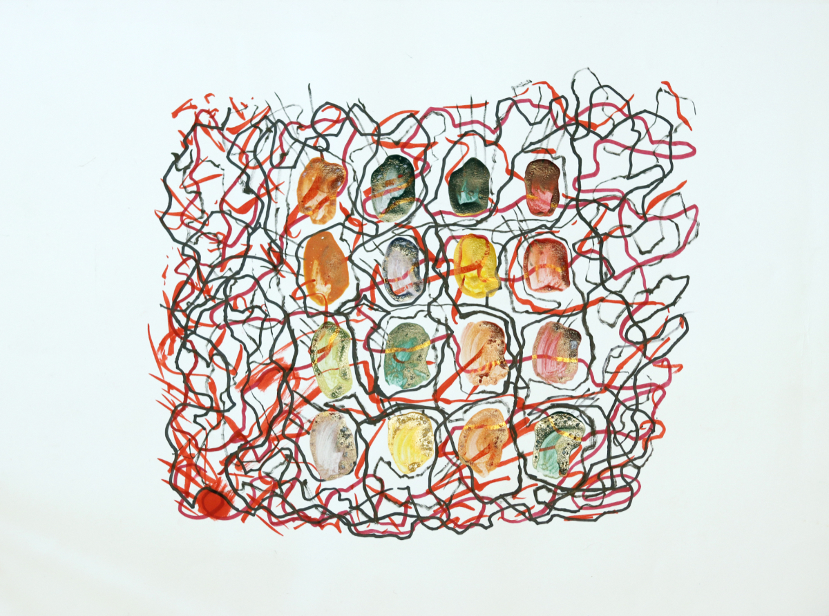 Wege 1, 2023, 50 x 65 cm, Acrylfarbe, Filzstift auf Zeichnungskarton